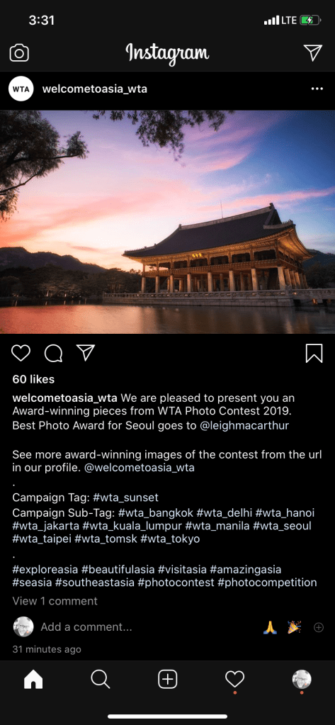 They announced the winner for Seoul today, and I’m pleased, proud, and honoured to say that it was yours truly with this shot: