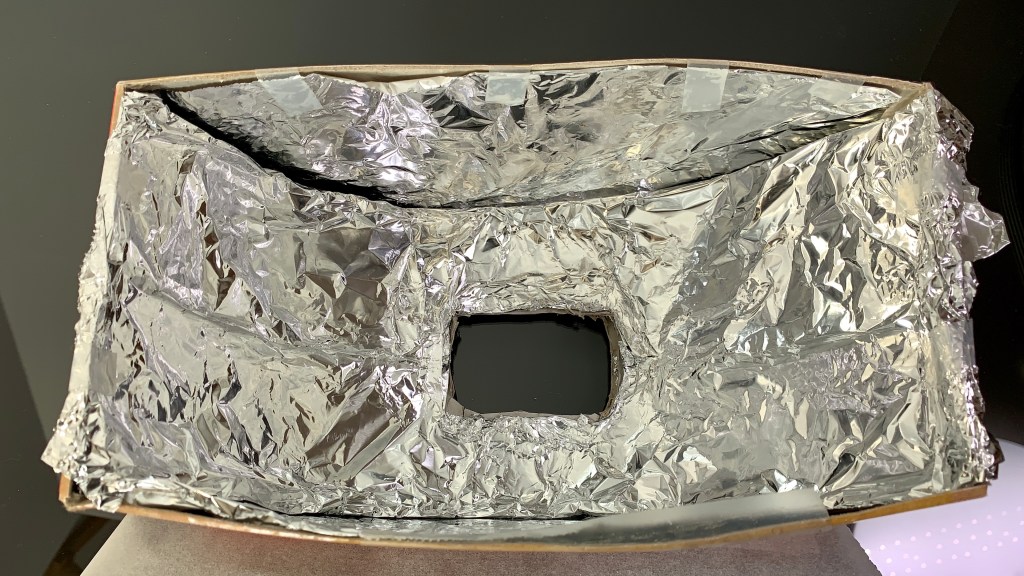 - I lined the inside of the tissue box with aluminum foil.