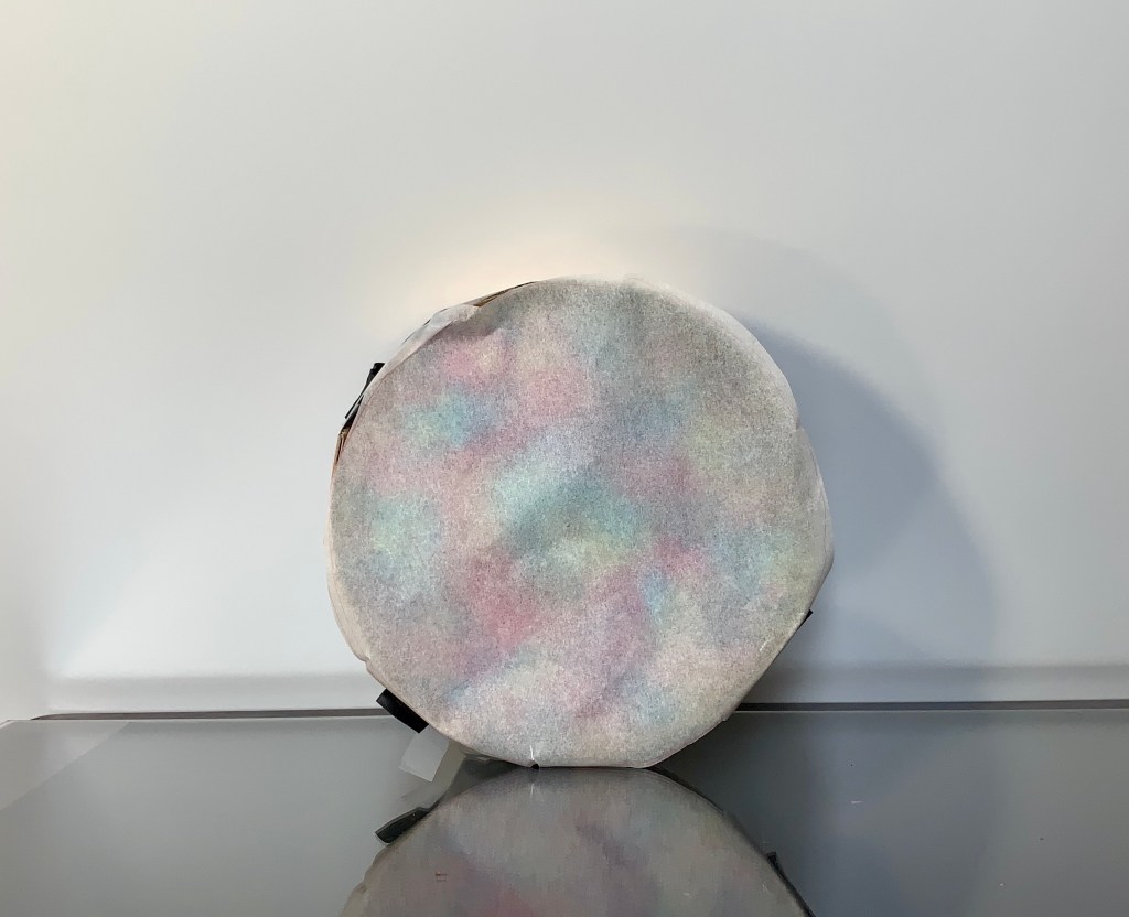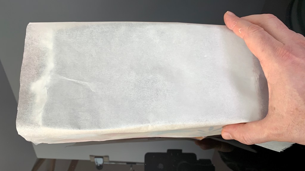 - Covered the top of the tissue box with parchment paper (or paper cooking foil as it’s called here).