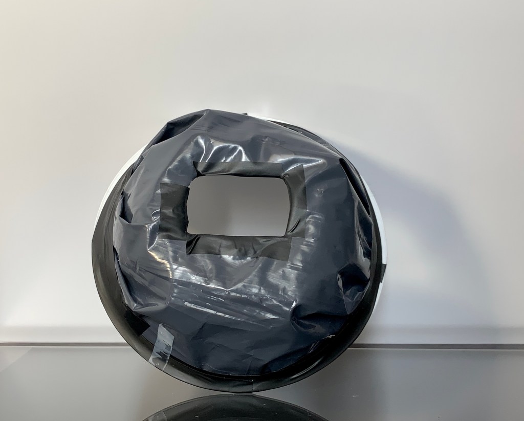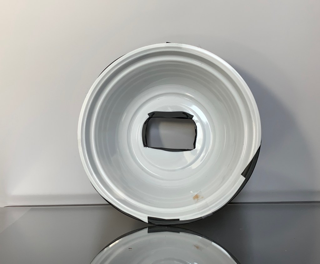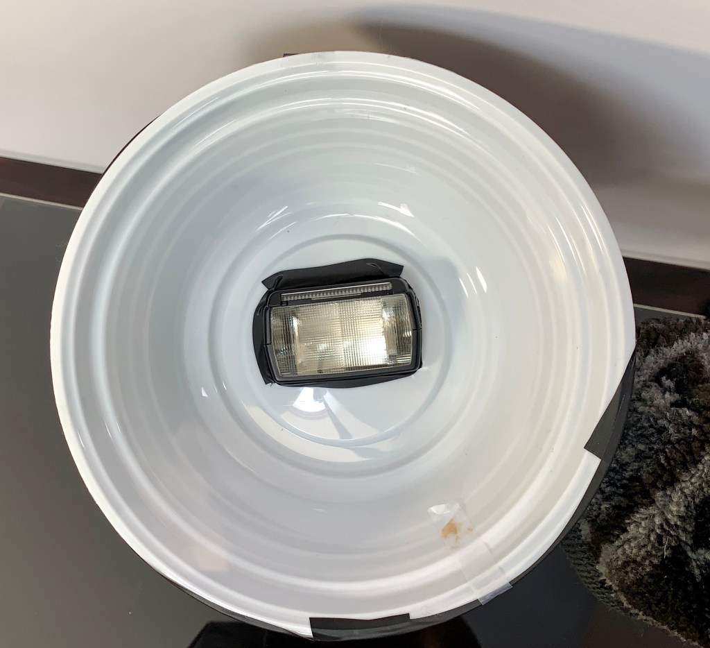 - I traced the flash head on the white plastic bowl and cut.