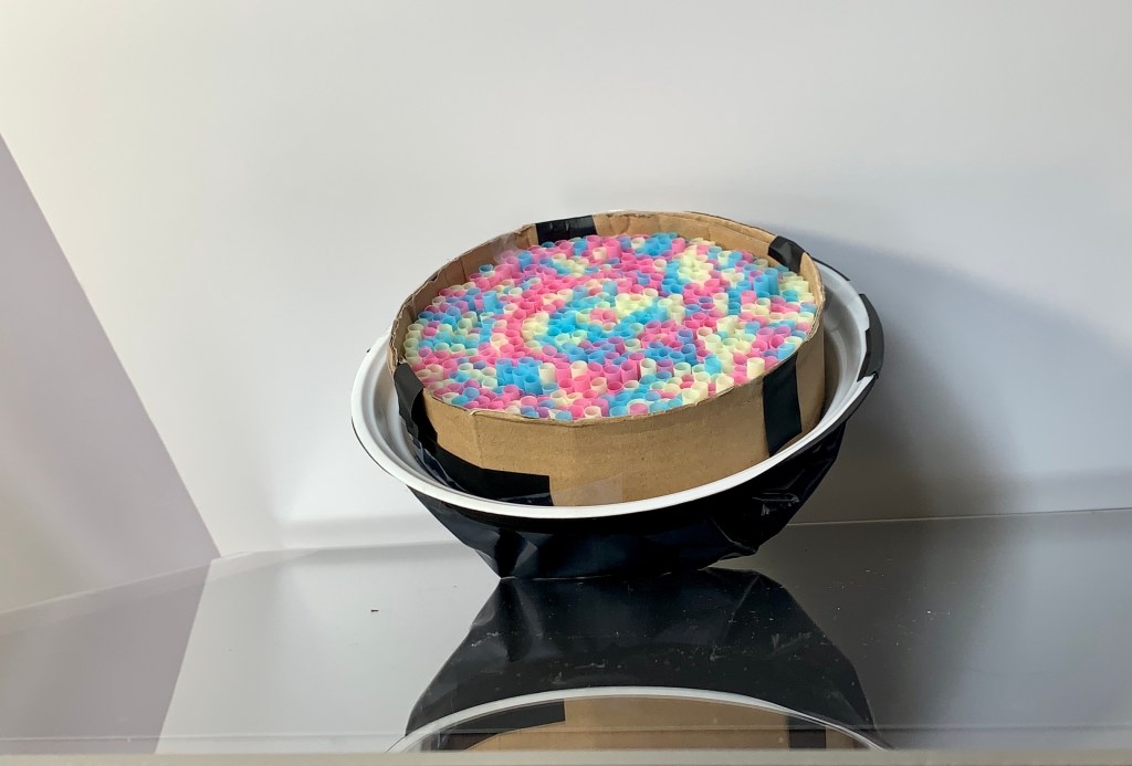 The coloured straws were a bit of a worry, as I wasn’t sure that the colours would splash out with the light. After a couple of tests, I really couldn’t see much of a colour effect. Success!