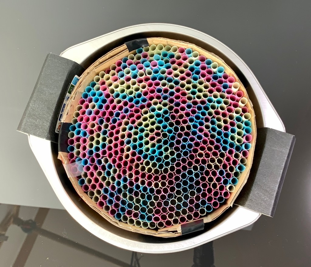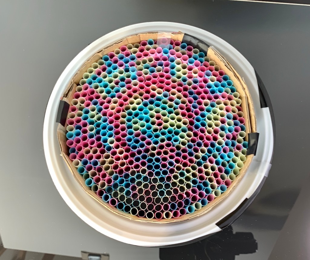 - I used 100 drinking straws (I probably could have and should have used more, but they were sold in packs of 50, and I didn’t want to buy 3).