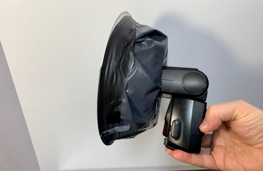 - Cut a hole through those pieces so the flash head should get through.